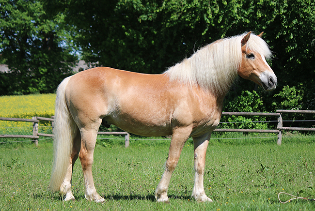 Das Fundament des Haflingers ist trocken, die Gliedmaßen korrekt, mit kräftigen Gelenken und mittellangen Fesseln ausgestattet.