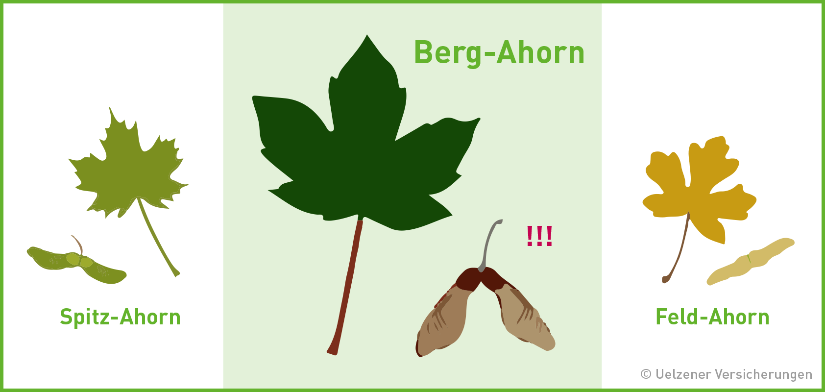 Die Flügelfrüchte des Bergahorns fallen vor allem im Herbst von den Bäumen. Aber auch im Frühjahr besteht Gefahr: Die Keimlinge des Baums sind beim Verzehr ebenso giftig für Pferde wie die Flügelfrüchte. Mehrere aktuelle Praxisfälle der Uelzener Versicherungen zeigen die steigende Brisanz. Grund: Der trockene Sommer des vergangenen Jahres sorgte für Futterknappheit auf den Weiden. Durch das kürzere Gras nahmen die Pferde beim Fressen vermehrt Ahornsamen mit auf. Der milde Winter sorgt zusätzlich dafür, dass im Frühling eine große Anzahl an Keimlingen vom Baum produziert wird.